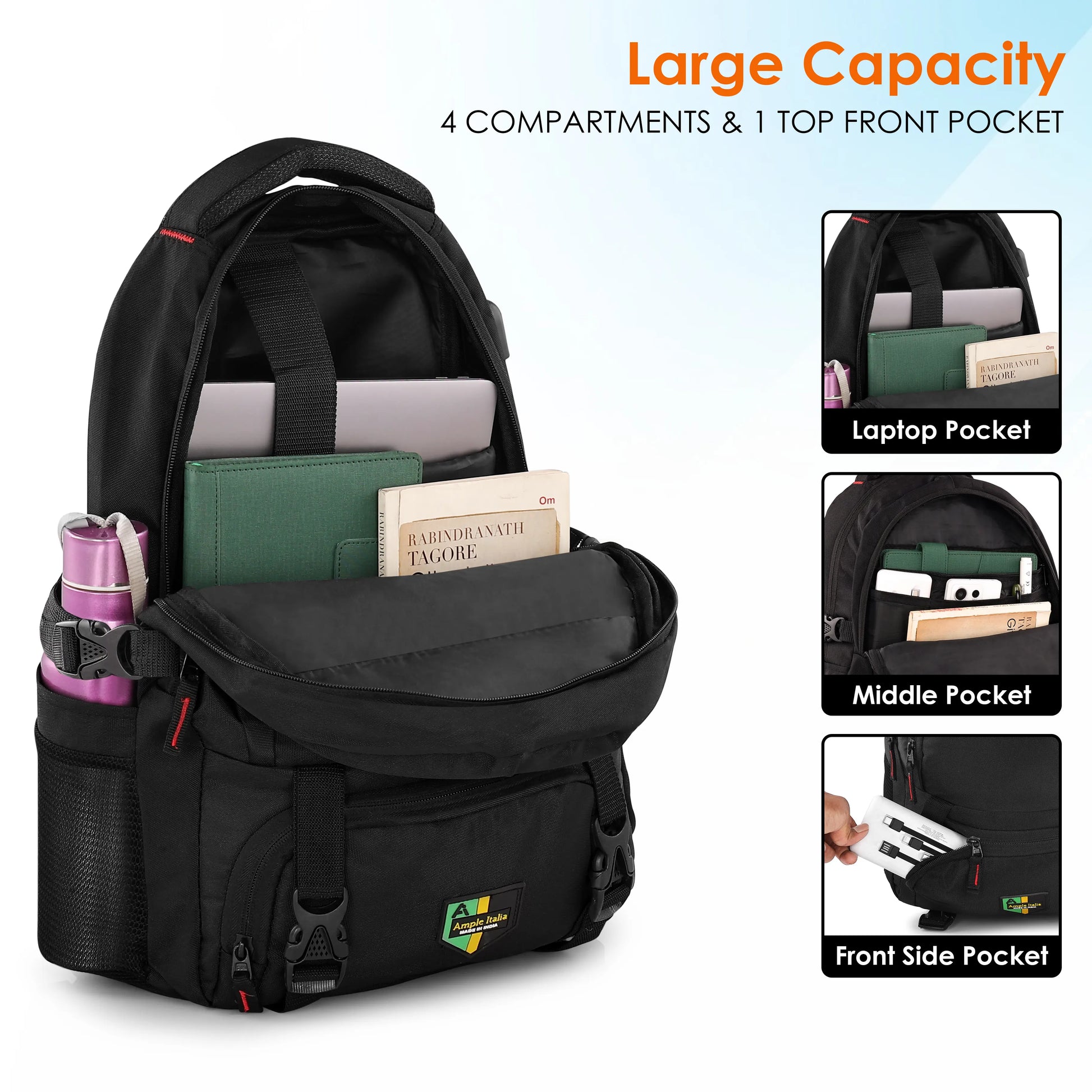 ✅ Large Capacity – 4 compartments + 1 front pocket for laptop, books, gadgets & accessories.