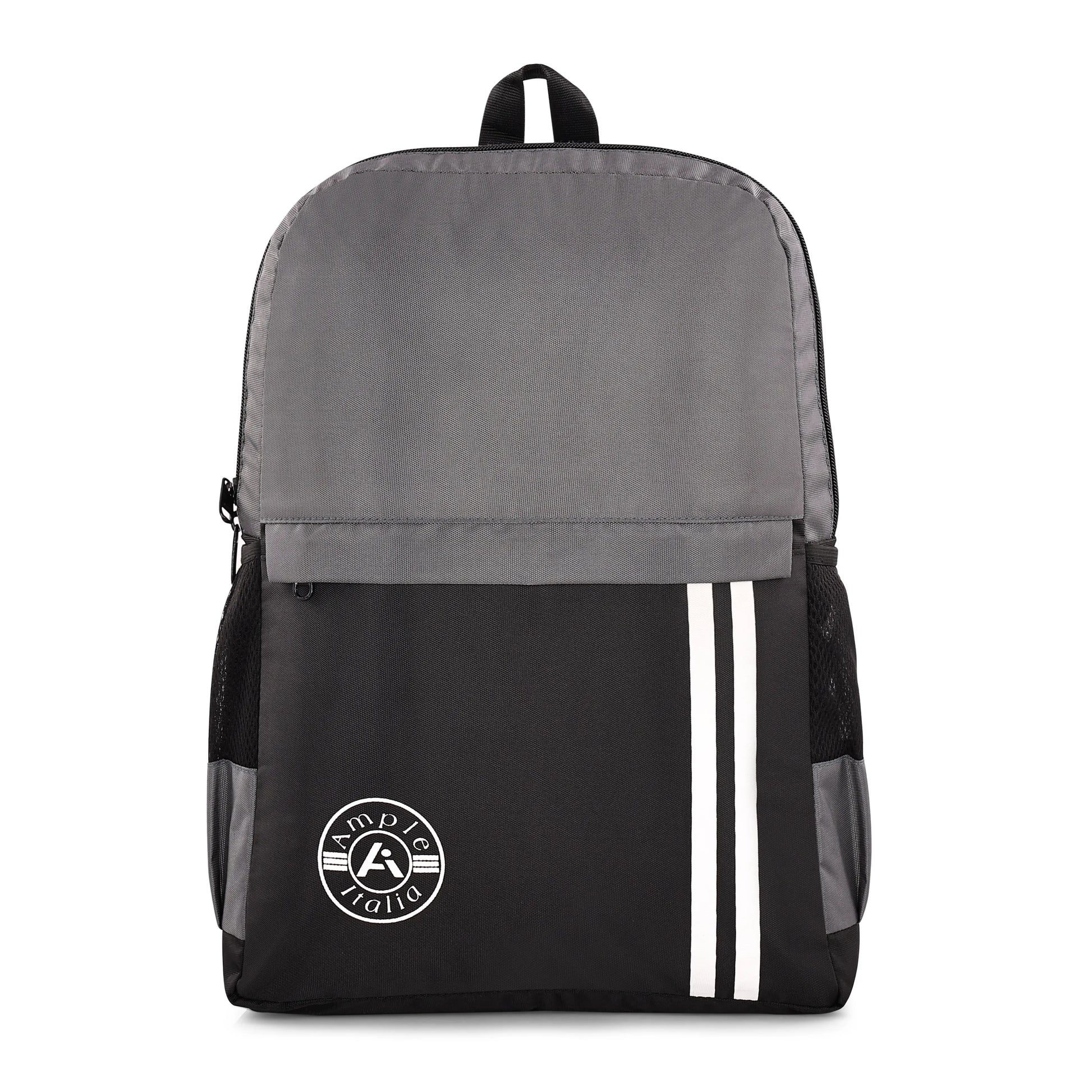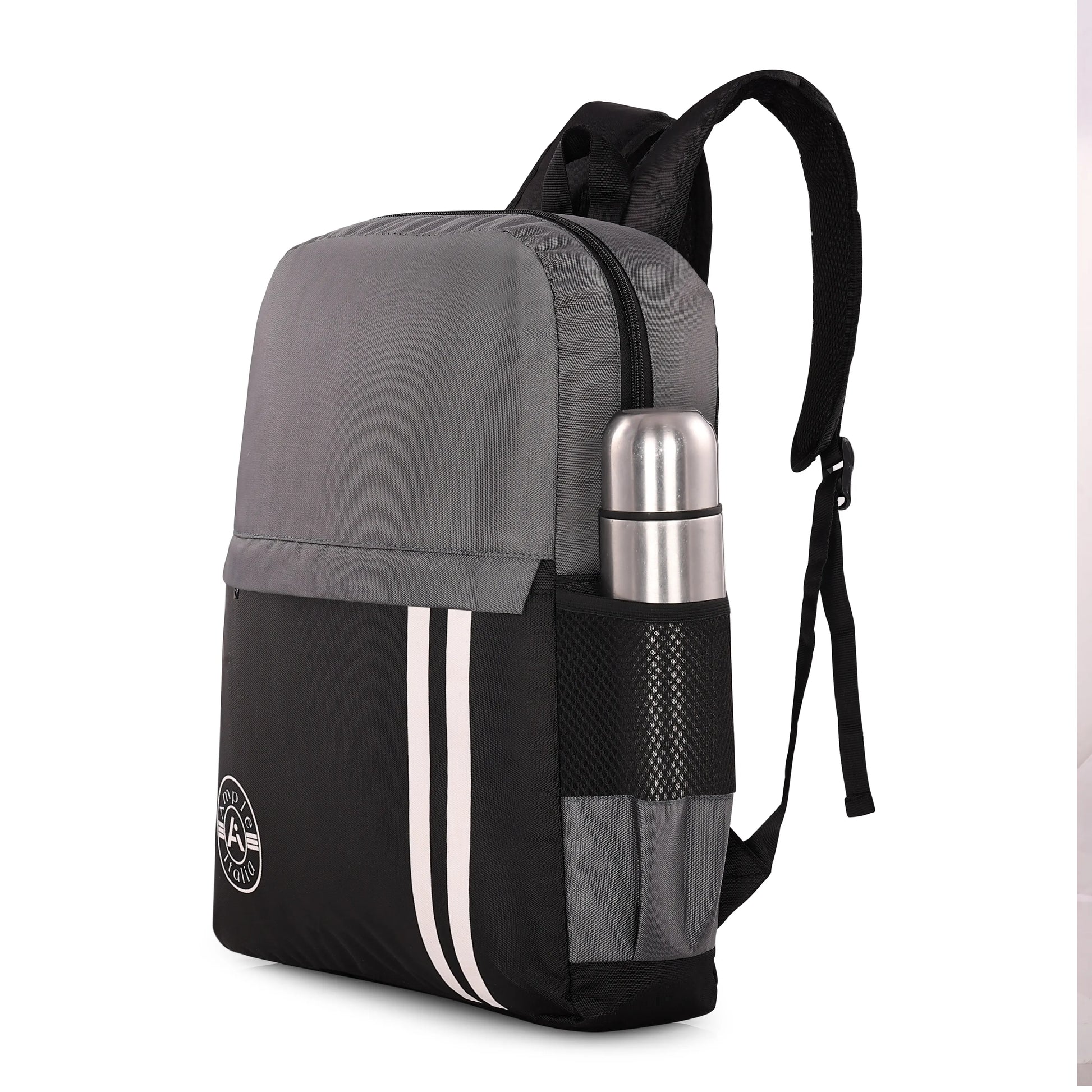 Sleek, modern, and built for daily use — this black and grey striped backpack is your perfect companion for school, office, or travel. Designed with a spacious main compartment, dedicated laptop pocket, and side mesh pockets for bottles, it offers both style and practicality. The durable fabric with double zipper closure ensures long-lasting use, while the padded shoulder straps and breathable back panel keep you comfortable even on long days. Lightweight yet roomy, this backpack is the ideal blend of function and fashion for everyday carry.